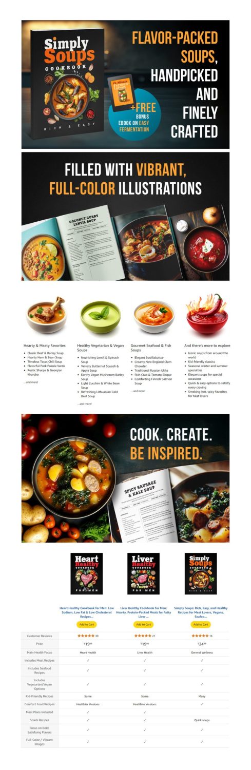 Order your custom A+ Content design for Amazon! A professionally designed A+ page plays a key role in boosting your book’s conversions and sales. We create visually appealing and engaging content that showcases your book’s unique qualities. Browse our portfolio of successful A+ designs to see how we’ve helped authors improve their listings.